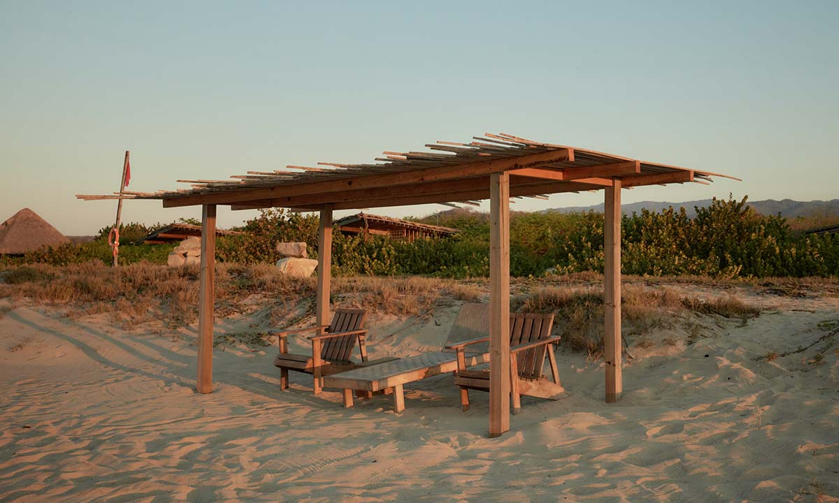 Contamos en todo el frente de playa de nuestro desarrollo pérgolas donde podrás disfrutar directamente de la playa, ya sea asoleándote o bien tomando algo en nuestras tumbonas protegiéndote del sol.